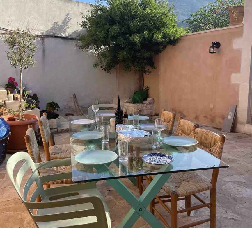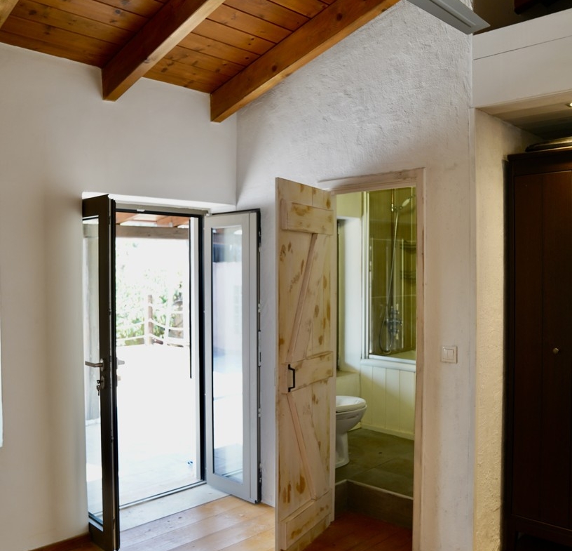 First Floor: the stairs lead to a small hallway with the master bedroom with en-suite bathroom and patio doors opening to a large part covered terrace with magnificent views of the hills and mountains across the village. An external staircase leads down to the courtyard garden.